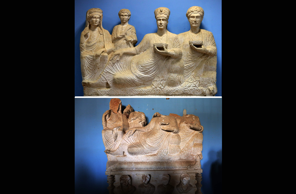 Palmyra emerged first as an oasis stop for caravans from Mesopotamia’s Euphrates River to Damascus and later as the terminus for the Silk Road for Mediterranean ports. Stone reliefs and artifacts from the Phoenicians, Assyrians, Babylonians and Persians attest to the interaction of traders and empire builders. With the unification of east and west under the Roman Empire, Palmyra reached full flower as a trade conduit between the Mediterranean, Middle East, China and India. Even after centuries of conflict, Palmyra boasted some of the most intact Roman ruins in the Middle East. The variety eastern and western traders generated a uniquely mixed culture. Local merchants and officials retained eastern religious practices but embraced Roman economic, political and funerary traditions.